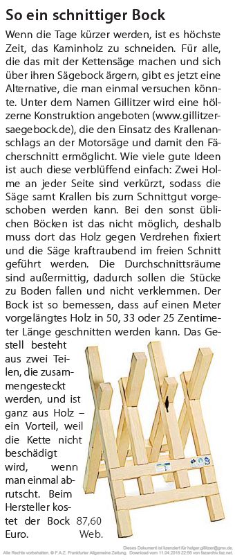 Der Gillitzer Sägebock® in der FAZ