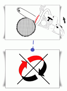 Die Säge wird dabei stets auf Anschlag geführt ("Fächerschnitt"), somit wird ein Mitdrehen des Schnittgutes verhindert.