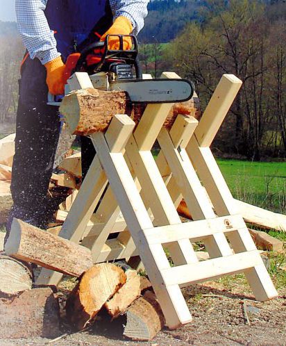 Die Sägevorrichtung Gillitzer verbindet in praktischer Weise Unfallschutz und Gebrauchstauglichkeit. Das Holz liegt fest in der Auflage und kann beliebig auf 50 cm, 33 cm oder 25 cm Längen geschnitten werden.